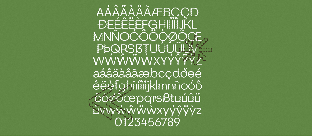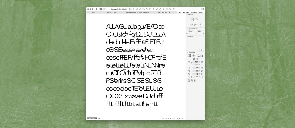 Muddy est une font faite de pleins de formes pâteuses qui ont pris la pluie et deviennent de la gadoue difforme. Elle a une regular + une outline et pleins de ligatures contextuels et post-binaires de @bye.byebinary 🎀💌💥